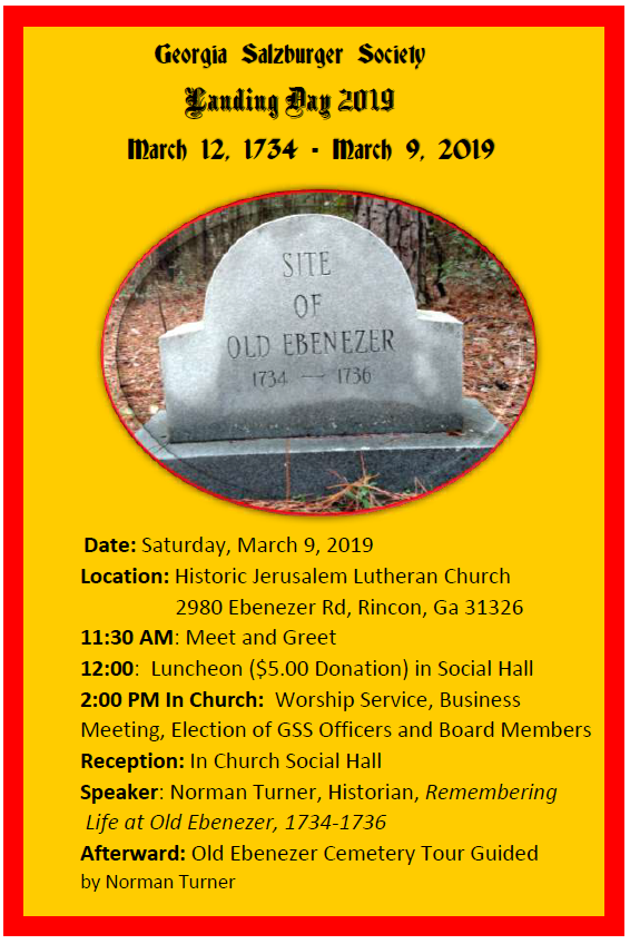 Georgia Salzburger Historical Society 2019 Landing Day History Celebration